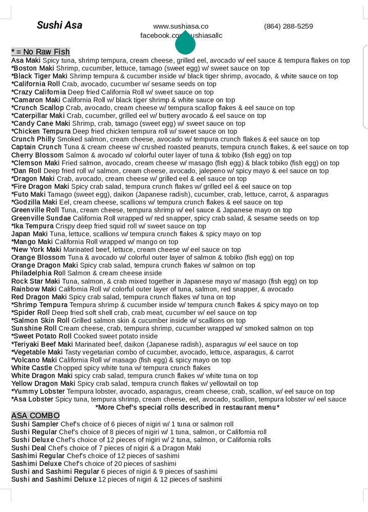 Sushi Asa, located at 150 Tanner Rd in Greenville, SC, is a must-visit sushi bar that offers a wide range of delectable options. This casual spot is perfect for lunch or dinner, with features like outdoor seating, free Wi-Fi, and a private parking lot. Whether you're looking to dine in, take out, or have your meal delivered, Sushi Asa has you covered. They accept Android Pay, Apple Pay, and credit cards for convenience. Good for groups and kids, this restaurant also offers beer and wine options. The menu boasts fresh and delicious sushi dishes that are sure to satisfy your cravings. From classic rolls to innovative creations, Sushi Asa has something for every sushi lover. Don't miss out on experiencing the flavors of Sushi Asa.